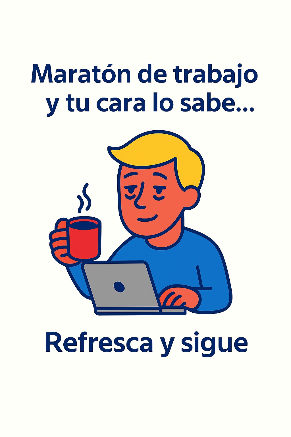 Maratón de trabajo y tu cara lo sabe… refresca y sigue